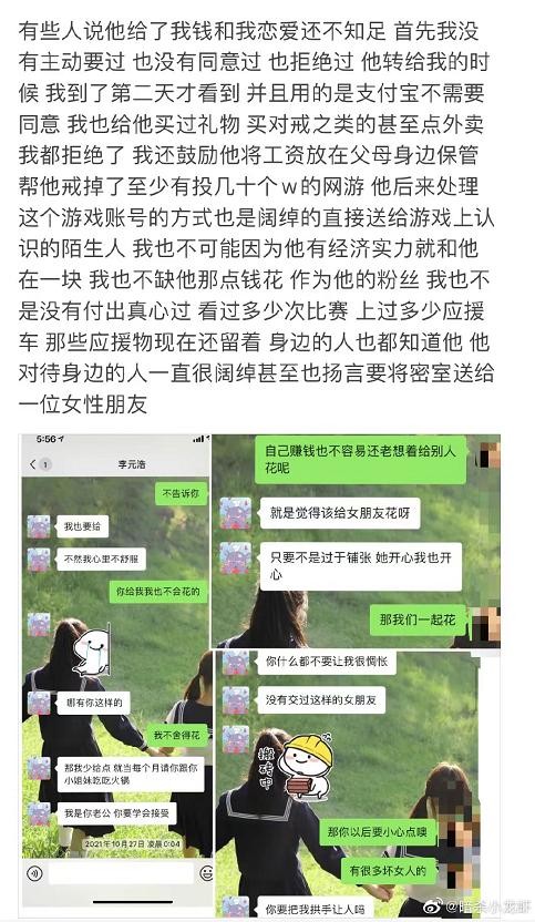 先是小虎的一位“前女友”在某瓣发文称自己被小虎玩弄了感情,两人于去年在小虎开的店里相识,小虎一看到她就觉得她可爱甜美,费尽心思要到了她的微信。RNG在冰岛世界赛止步8强的时候,许多粉丝还在为他们感到惋惜,但是小虎却已经对这位妹子表白了,两人也尝试交往了起来。没想到过了两个月,小虎说两人不合适,提出了分手,并且给妹子打了5万元补偿费用。