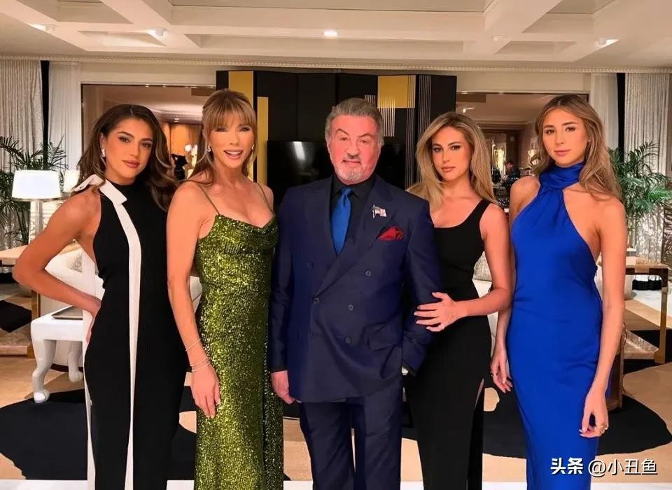 78岁史泰龙久违带妻女赴宴,仨女儿亭亭玉立,56岁超模爱妻也夺目
