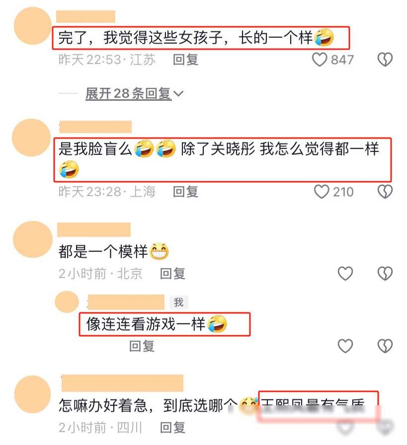 薛宝钗的扮演者黄佳容,面容虽清秀,却缺乏辨识度,下巴尖细,网红气质尽显;贾迎春的饰演者杨宝静,鼻子高挺,下巴尖锐,整体形象略显刻意;贾惜春的扮演者黄凰,体态不佳,气质全无;袭人的饰演者杨祺如,穿着朴素,五官平平;李纨的扮演者王艺潇,气质平平,五官不够立体;景幻仙子的饰演者龚洁,妆容老气,缺乏灵气;香菱的扮演者沈倩,虽身材高挑,但面容与其他女演员无异;晴雯的饰演者马菲,服饰廉价,长相普通;子娟的饰演者曲芷含,衣服选择不当,长相也无特色;秦可卿的饰演者冷鑫瑶,身材瘦弱,面容憔悴;史湘云的饰演者姜安菁,衣服选择老气,缺乏亮点。