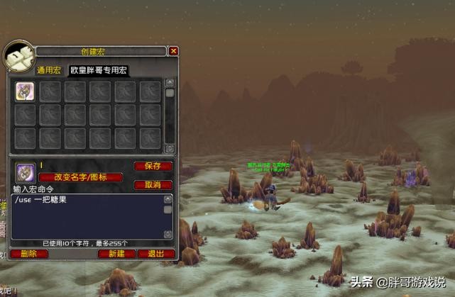 这里再给大家分享两个小技巧,第一是制作一个开糖果的宏,原因是糖果包不开掉的话是无法继续开糖罐的,虽然打开背包就可以开,但是总会忘记,而糖果包就不能直接放在技能栏里,用这个宏的话点一下就可以了,第二个是在40级学会310%飞行之后一定要用扫把坐骑,可以节约大量的时间。另外,如果觉得开糖罐太枯燥,还可以一边排随机本一边开。