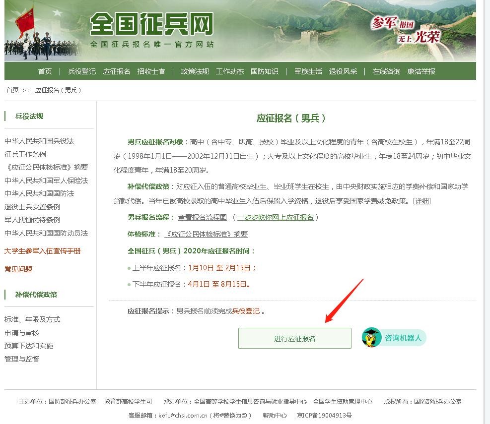 打开全国征兵网首页,不妨先了解一下征兵政策和报名条件(例如:报名年龄、身体条件规定等)。来跟着我,一步一步来!