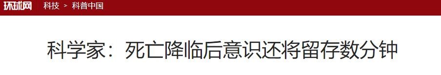 环球网-《科学家:死亡降临后意识还将留存数分钟》