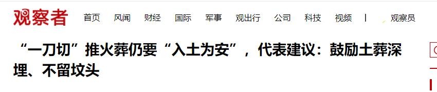 观察者网-《“一刀切”推火葬仍要“入土为安”,代表建议:鼓励土葬深埋、不留坟头》
