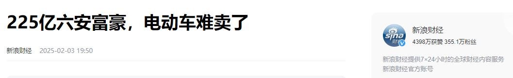 新浪财经 2025-02-03——《225亿六安富豪,电动车难卖了》
