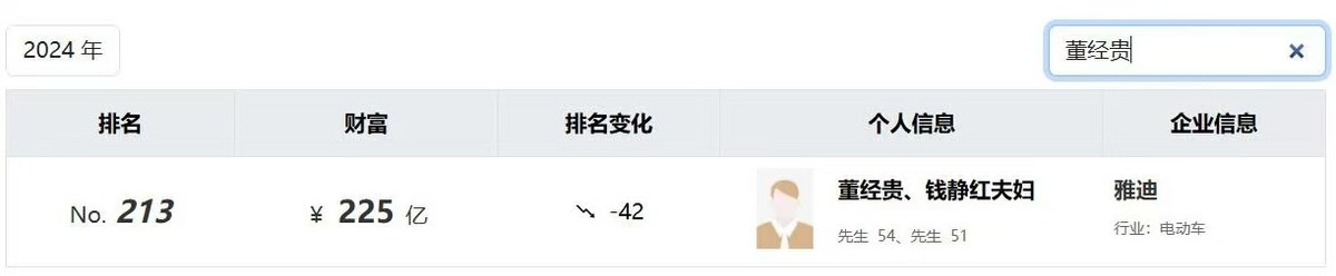 从2023年的《胡润百富榜》中以295亿财富位列榜单第708位,到2024年以240亿元人民币财富位列榜单第1050位,从这些都可以看出雅迪在近期遭遇的一些困境和问题。