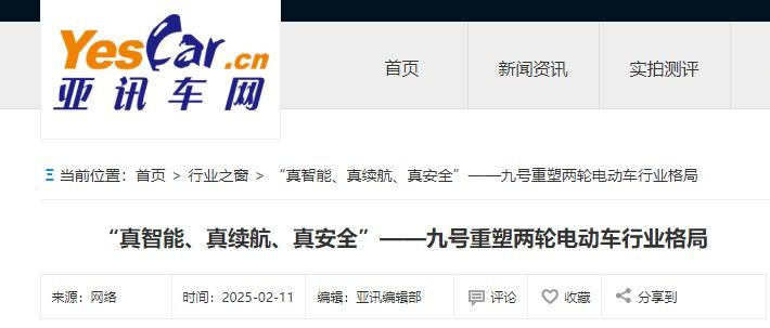 亚讯车网 2025-02-11——《真智能、真续航、真安全”——九号重塑两轮电动车行业格局》