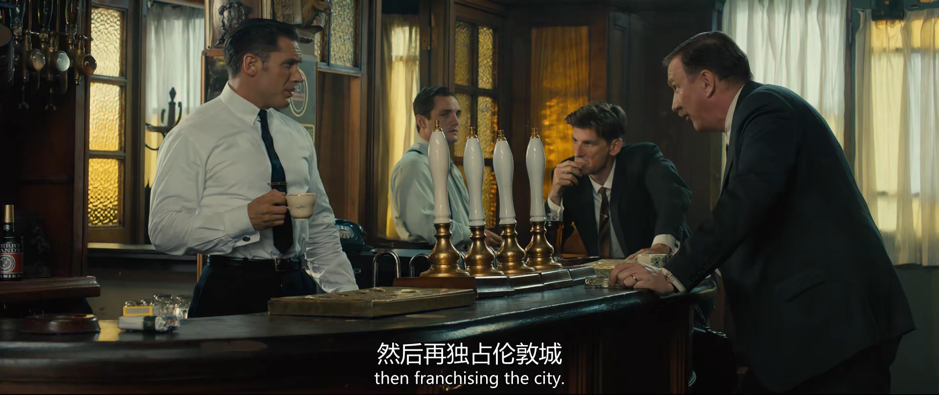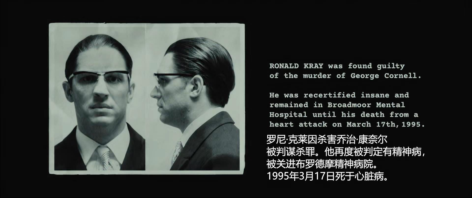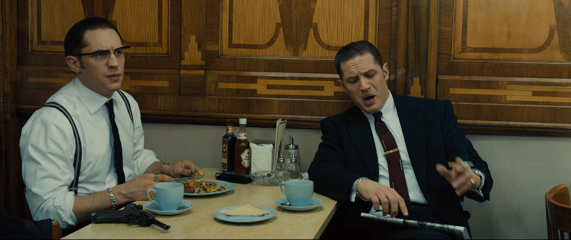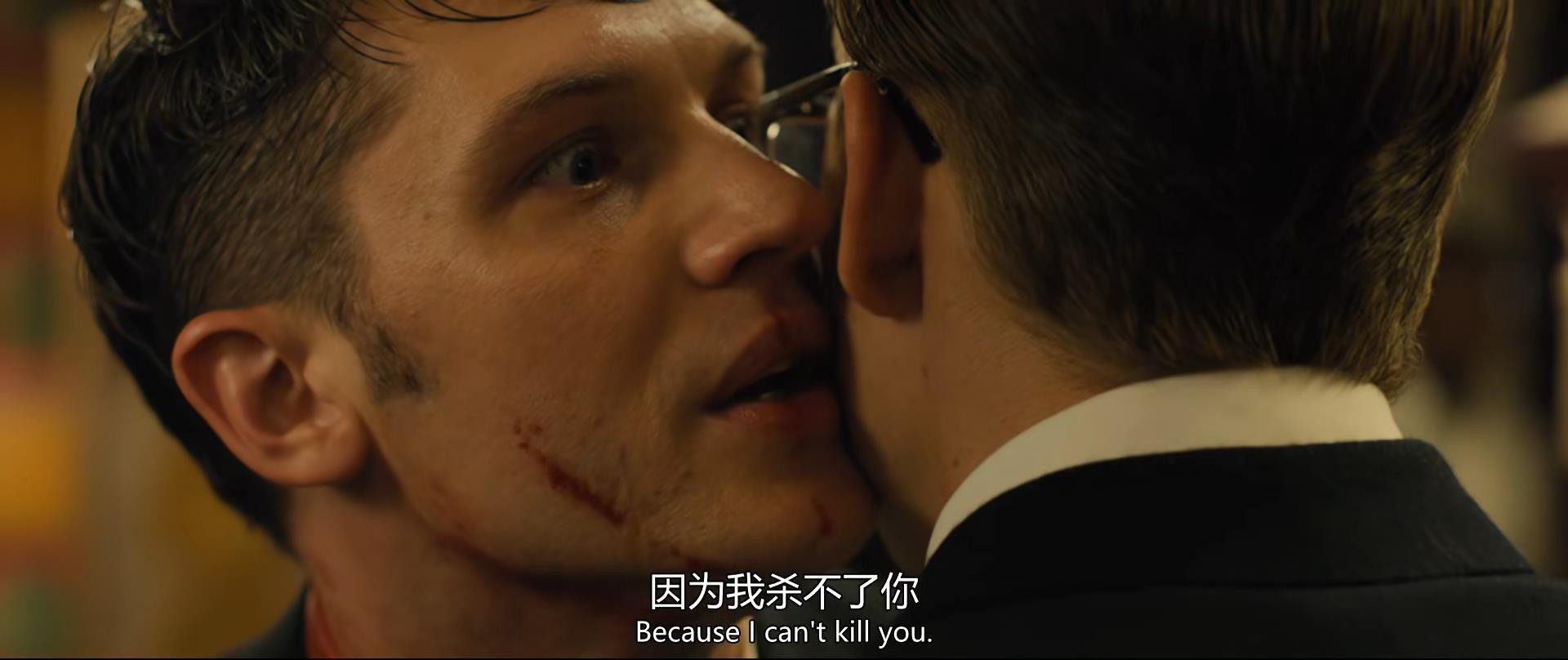 (PS:哥哥 雷金纳德与弟弟 罗纳德都是由汤姆·哈迪饰演,这也意味着他一个人完成了这场对打戏,可谓是演技大爆发。)