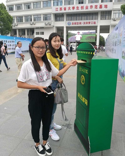 “这太有意义了,时光邮局收下了我的梦想,希望便会在未来生根发芽。”来自湖南常德的新生李俊仪认真地将写好的名信片投进了邮筒。
