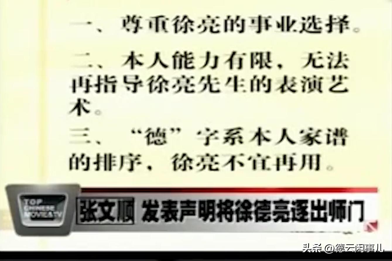 然而在徒弟徐德亮声讨郭德纲的时候,老先生全力站在了郭德纲身边,徐德亮原名徐亮,进了德云社之后,徐亮改名为徐德亮,成为张文顺的口盟徒弟。