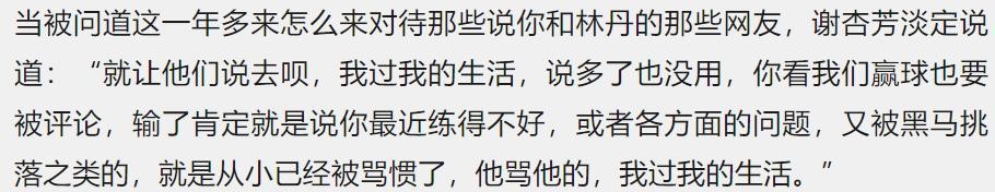 面对谢杏芳委屈求爱,网友真诚建议:“别卑微了,林丹不值得!”