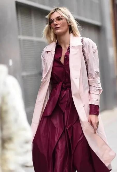 部分人也知道用卡其色来搭配酒红