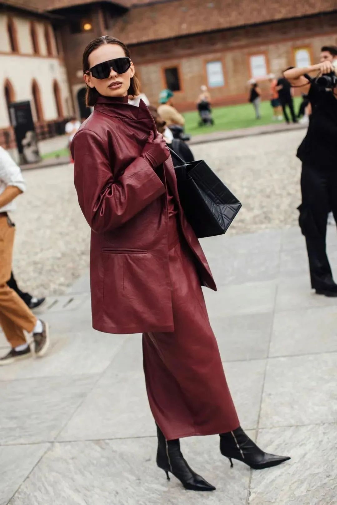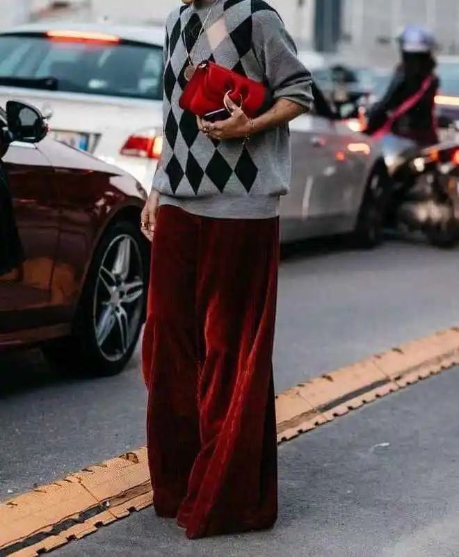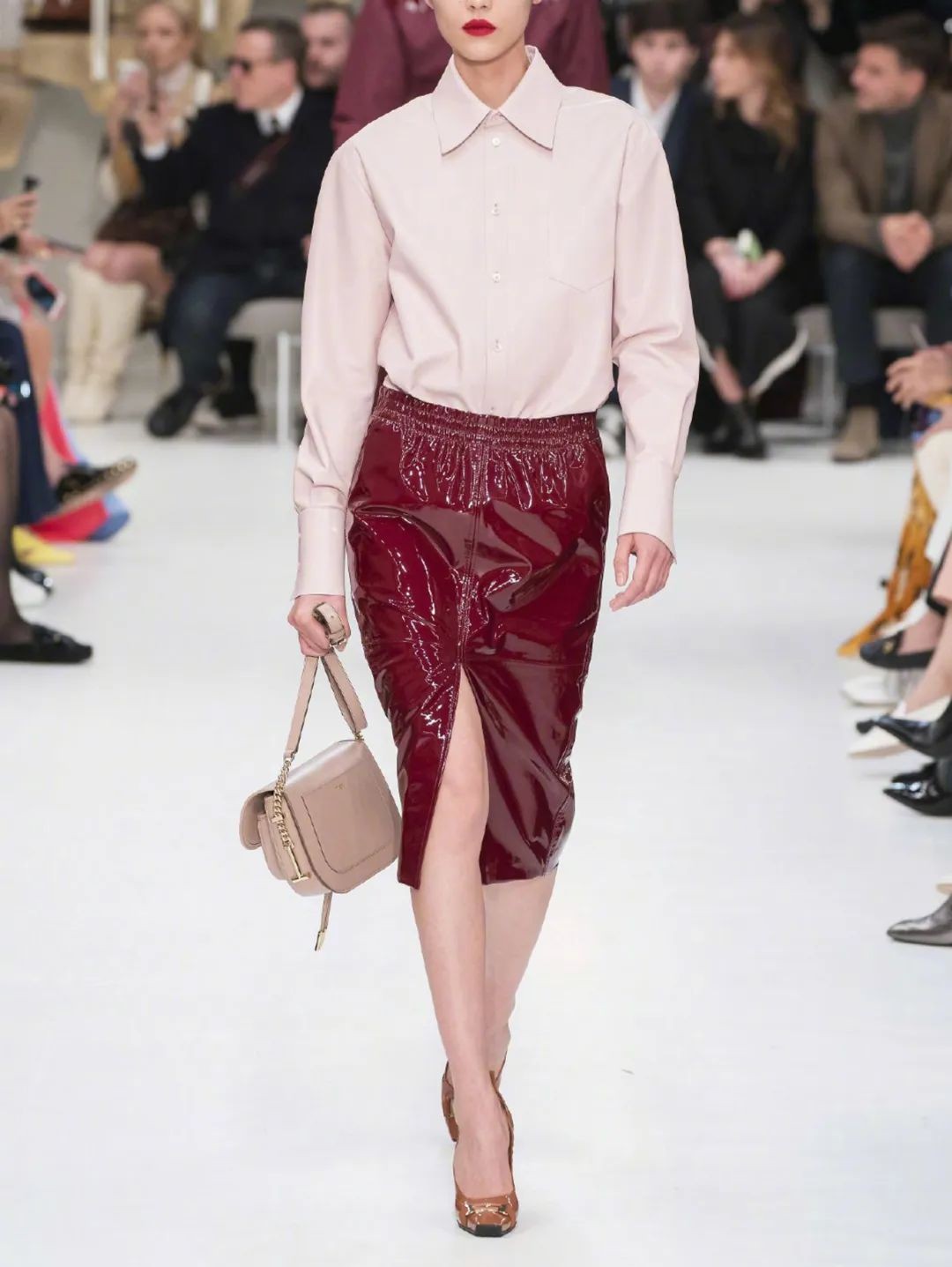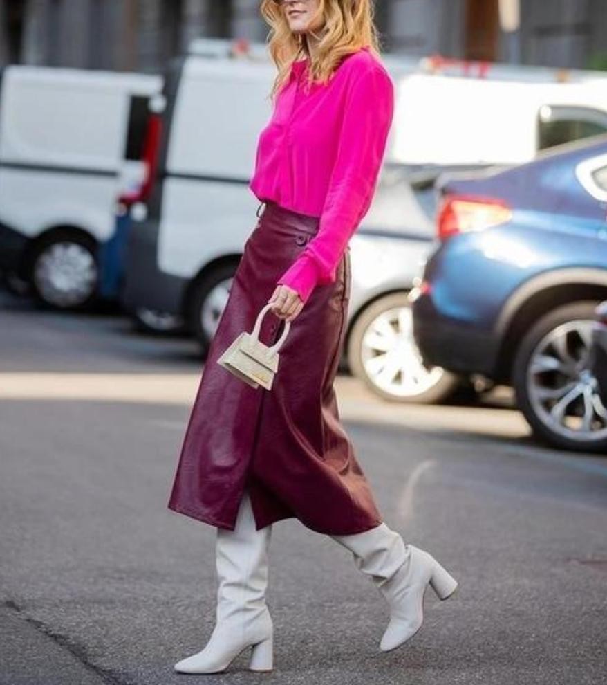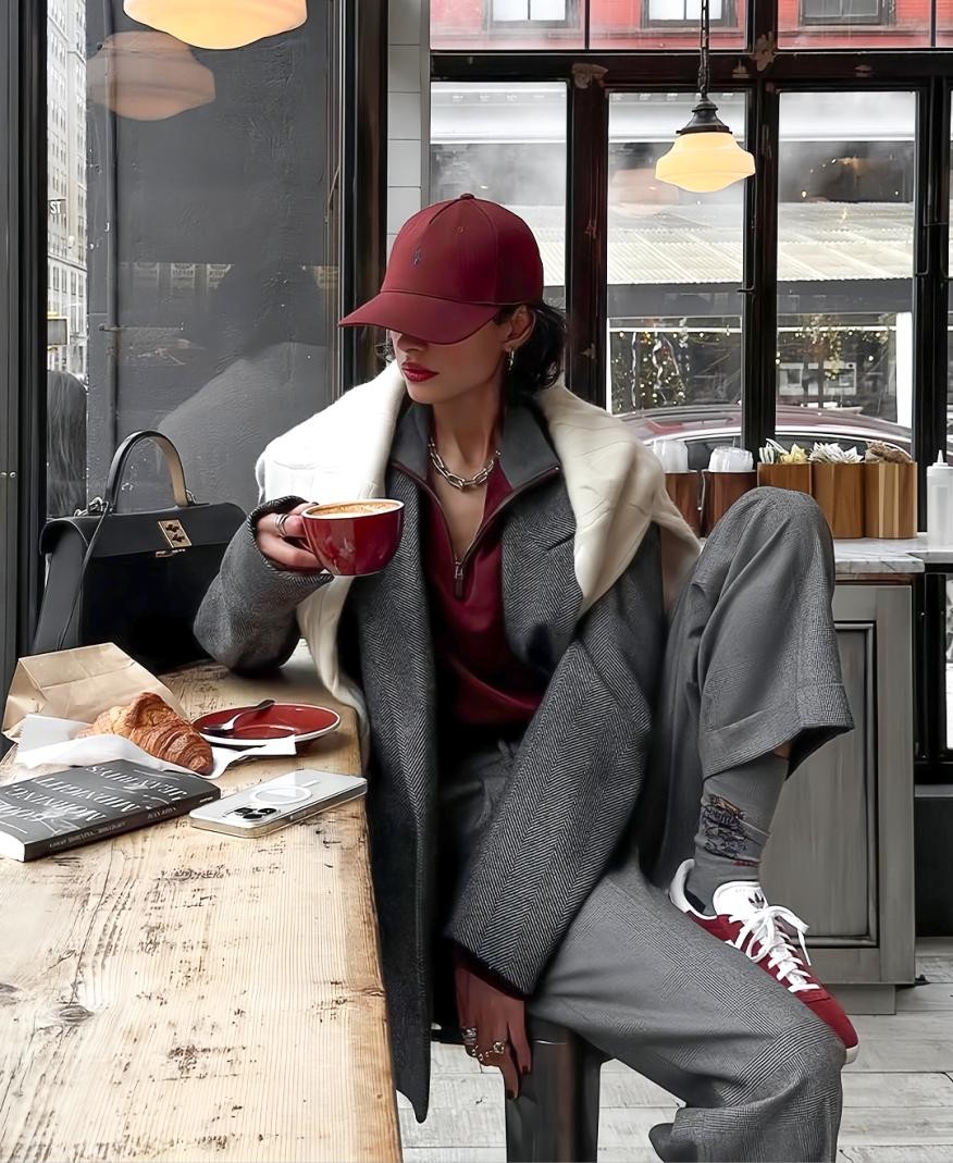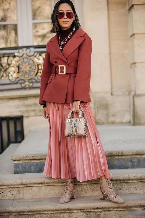 或将酒红色作为鞋包小面积点缀
