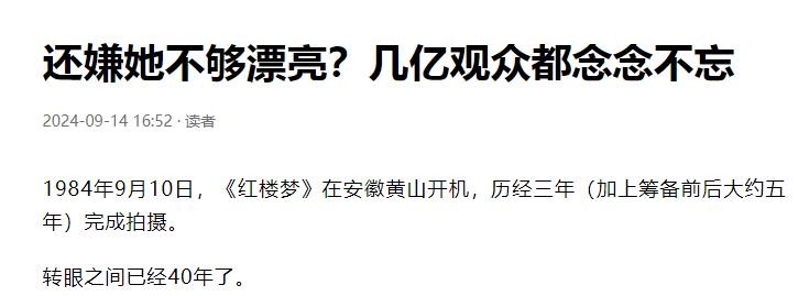 还嫌她不够漂亮?几亿观众都念念不忘——2024-09-14 16:52·读者
