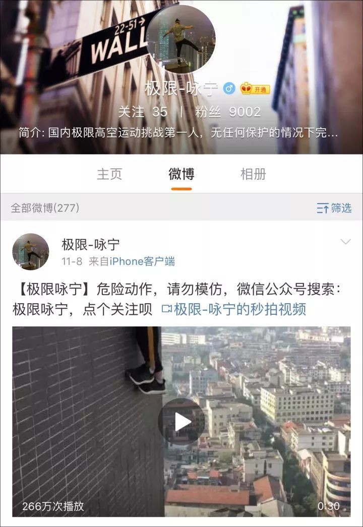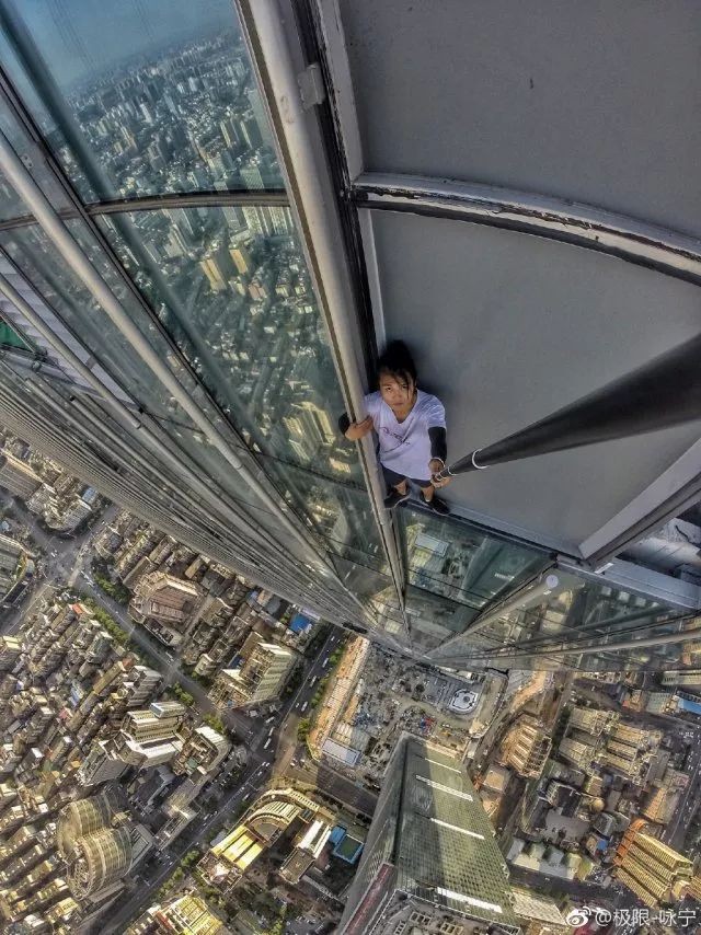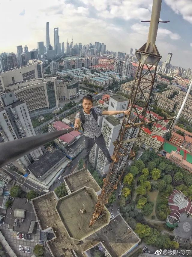 △吴永宁生前在微博上发的攀高自拍图片
