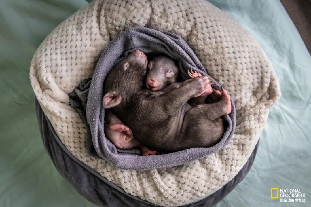 在Emily Small的家里,已经7个月大的兰登和布朗森睡在“人造育儿袋”中。和所有有袋动物一样,袋熊会生下未完全发育的幼崽,然后在妈妈的育儿袋里待满6个月才出来。
