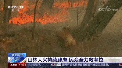 大火中挣扎的考拉,后被当地热心人士从热火中救出。