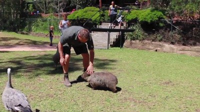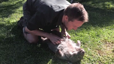 上图中的袋熊名叫“乔治”,此时正在与动物保护主义者Tim Faulkner玩耍。2016年,袋熊妈妈被车撞死,一名路人发现乔治;2017年2月,乔治被澳大利亚爬行公园(Australian Reptile Park)救助收容,直到乔治做好准备重回大自然之前,它会生活在这个新家里。在此期间,乔治与工作人员亲密无间,小家伙无比粘人,仿佛忘记自己是只袋熊,俨然一只可爱的狗狗。