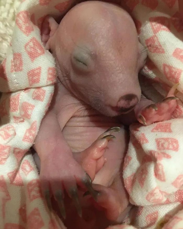 它在能够加热的孵化器呆了两个多月,刚被救助时小家伙患有袋鼠疱疹和葡萄球菌感染,已被妥善治疗。它在本周开始走路,但每天最多只能醒一个小时。