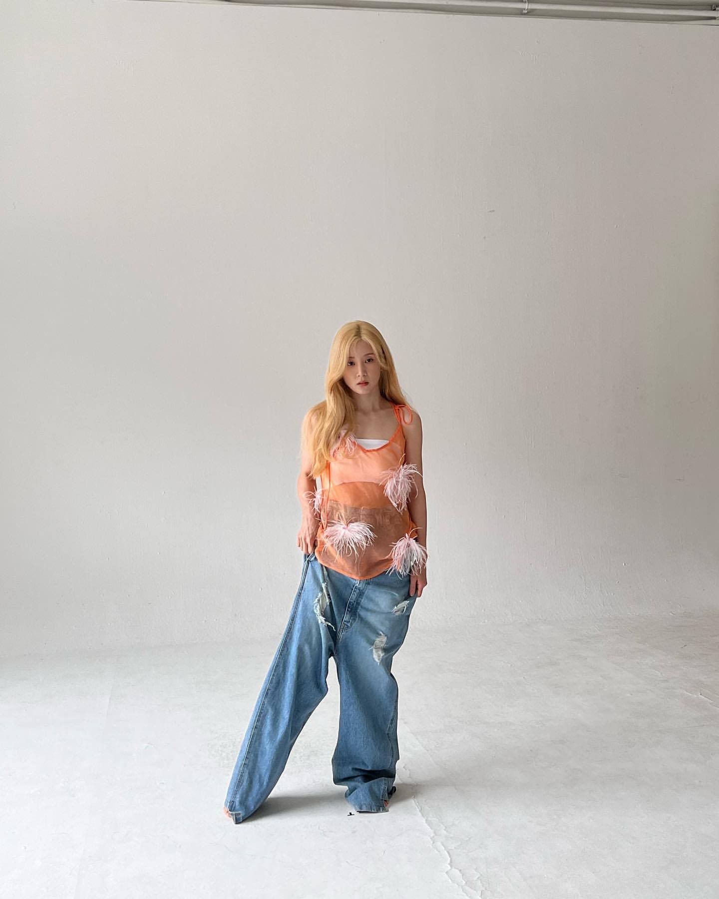 朴初珑还展示了,充满嬉皮感“令人不安”的时尚,引起了人们的关注,朴初珑身穿比她身体宽大得多的牛仔裤,甚至连脚都看不到,上衣是仿佛在透明的洋葱皮上粘了几朵羽毛,以相当复杂的感觉,一脸尴尬表情的朴初珑,以她特有的可爱笑容克服了服装的尴尬。