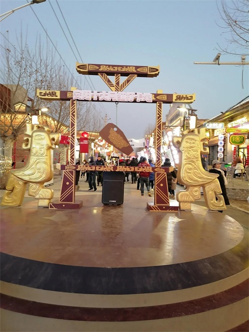 曾经废弃的大烟囱,如今变身灯光秀舞台,绚丽多彩的光柱如发光地标,点亮了城市的夜。刚开业不久的安阳殷墟考古文旅小镇更是引人注目。它坐落在豫北棉纺织厂旧址,经过精心规划设计,这座老厂华丽“重生”。民国风貌文化休闲街区上,霓虹灯招牌各具特色,交相辉映;废弃的木工房、机修车间和大礼堂外墙上灯光璀璨,勾勒出建筑轮廓,光与影完美交汇,让小镇的夜晚散发出迷人光彩。