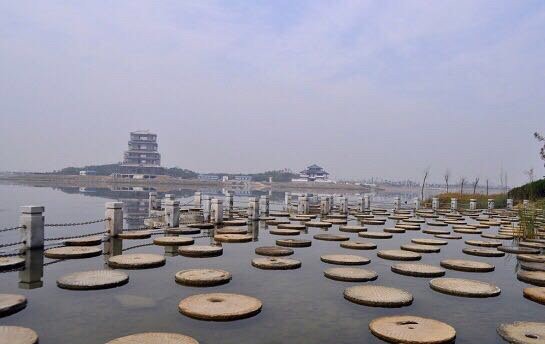 站在湖畔,极目远眺,天色迷濛,水天一色。对岸,楼阁突兀,拱桥水上,湖面波光粼粼,时不时有飞鸟点水,也有串串涟漪向外扩展。