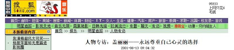 以上信息均来源于搜狐娱乐-2001-06-13-人物专访:盖丽丽——永远尊重自己心灵的选择