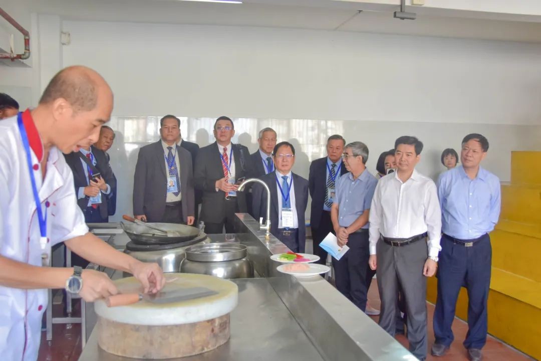 考察团一行还参访了学院烹饪实训基地、学生作品展,深入了解学校专业实训环境与文化育人模式。