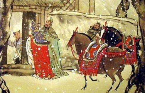 几天后三人再次冒着大雪来到诸葛亮家,但诸葛亮依然不在家,三人只能在新年之后再来隆中,第三次来的时候诸葛亮在家中睡觉,刘备让关羽、张飞在屋外磴口,而自己则在台阶下静静等着,直到诸葛亮醒来,两人谈了很多,最后邀请诸葛亮出山当做自己的军师。