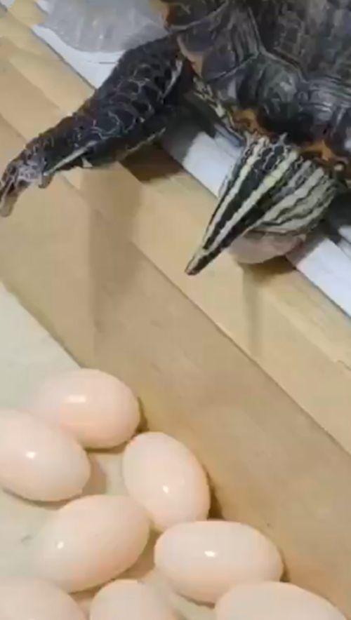 养了23年的乌龟下蛋了,女子激动地录下视频:是个好兆头呀