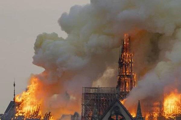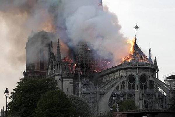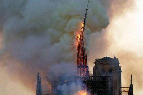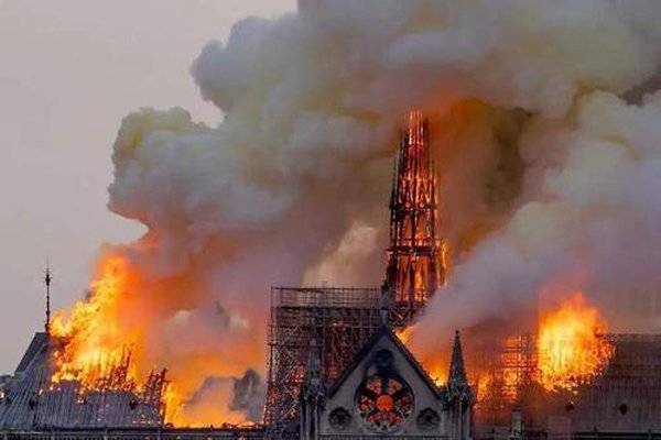 火势蔓延速度很快,难以控制。巴黎圣母院标志性的尖顶被烧断,坍塌倒下。有400名消防员已在火灾现场,巴黎圣母院主体建筑不断冒出白色烟雾,空气中弥漫着刺鼻的气味。2019年4月16日上午10时,巴黎圣母院大火被全部扑灭。屋顶和塔尖被烧毁,但主体建筑得以保存,圣母院中的主要文物“耶稣荆棘冠”和“圣路易祭服”等也没有受损。