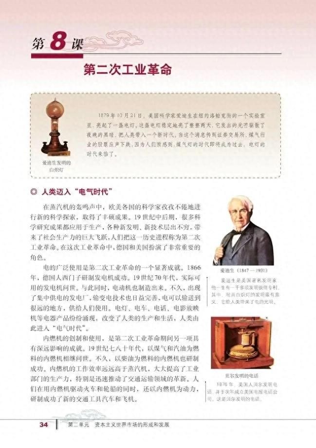 第二次工业革命的一个重要特征是能源的多样化和新型能源的利用。蒸汽机的改进使得其效率大幅提高,成为工业生产的主要动力。同时,电力的广泛应用也开始改变生产方式。电力不仅提高了生产效率,还推动了电气化产业的发展,催生了新的工业领域,如电气工程和电机制造。