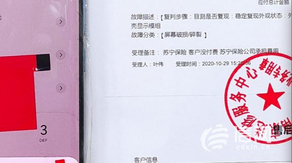 9月14日,辛女士花了4000多元,在李沧区的苏宁易购旗舰店购买了一部小米10手机,附带购买了碎屏险。10月份时,辛女士在使用过程中,手机不慎跌落,摔碎了屏幕。“我去了苏宁易购,说要将手机寄送到南京进行维修。”