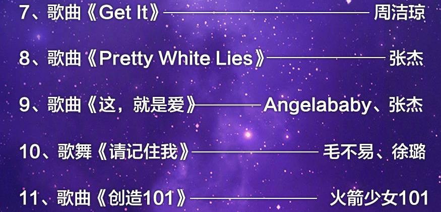 接下来,还有《偶像练习生》导师周洁琼为我们带来歌曲《get it》,《创造101》导师张杰带来《pretty white lies》,并且杰哥会和Angelababy合唱一曲《这,就是爱》,对此,网友怀疑到:想知道,baby会唱歌吗?