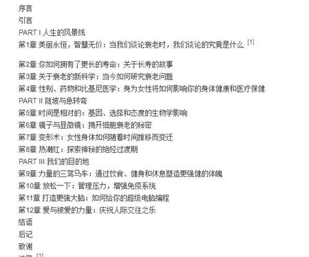 这本书是美国卡梅隆 · 迪亚茨写的,我几乎推荐给身边所有的闺蜜了,看看目录就知道为什么推荐啦~不夸张地说,看完这本书,你一定会对衰老,年龄以及自己的生活方法另眼相看。