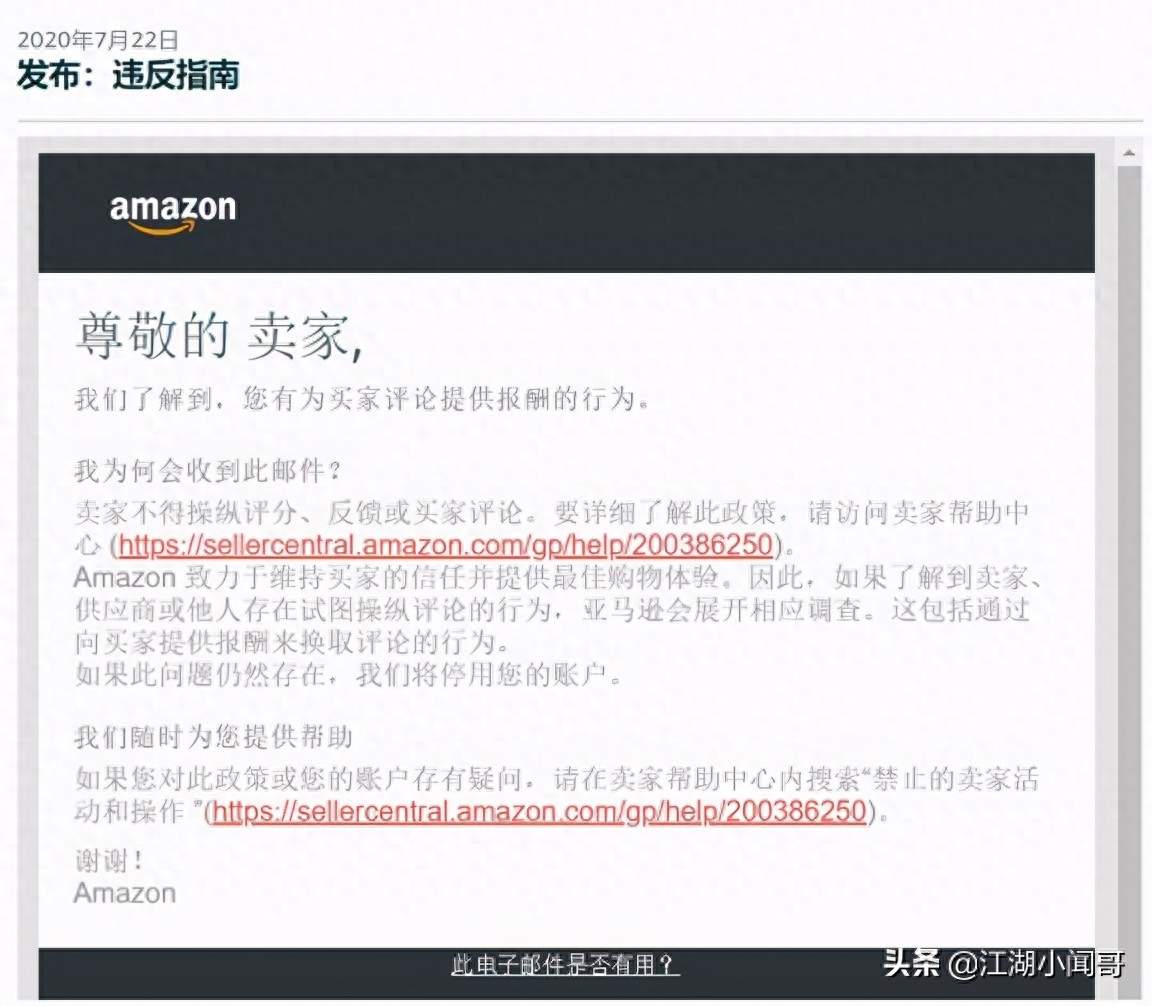 第一段:直接告诉你Amazon已经掌握到你用经济补偿形式换取评价的违规证据;