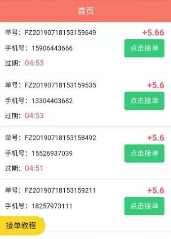 4、一般早上8点到晚上0点都会有大量的单子,首页每天会有公告通知的什么时候有大量单子的。目前我注册的单子在4.7元左右,挺简单的,平台满10元就可以提现,提现秒到支付宝。