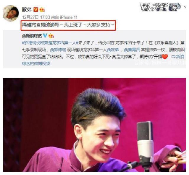 之后欧弟也是更改艺名,欧阳隆基。消息传开后,欧弟也是转发了节目联系视频,并且发文“隔离完喜提帅师哥,我上班了,大家多支持”。
