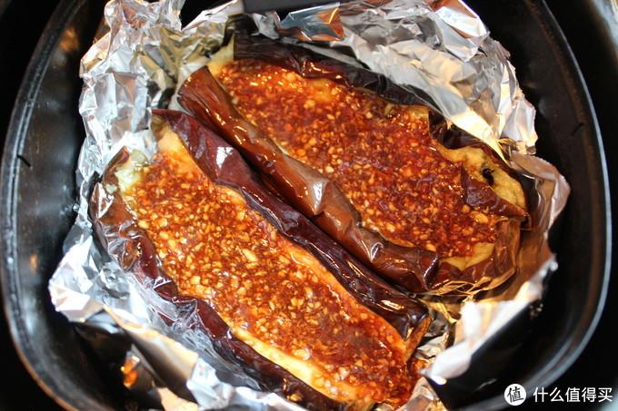 注意哦,烤茄子一定要一整个茄子放进空气炸锅,而且不要在烤之前就切开,切开后再烤的茄子是干硬的,内部没有水分,破坏口感。如果茄子太大了可以分成两段来烤