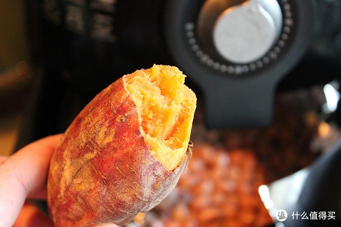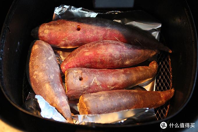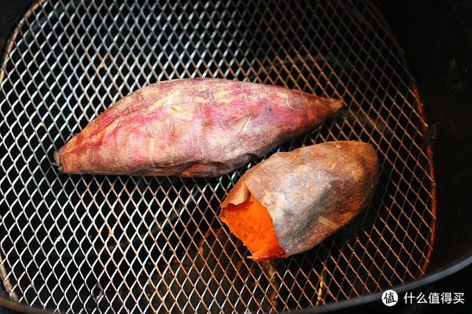 楼主这些红薯不是很大,所以烤了15分钟。空气炸锅停止工作后拉出炸蓝
