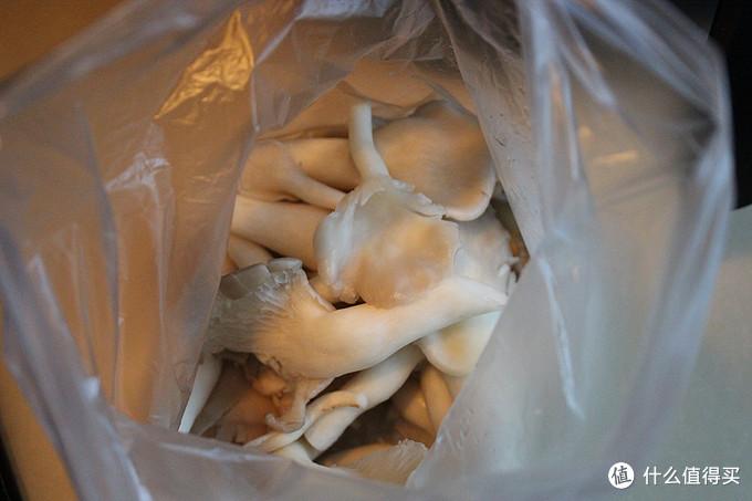 拿出懒人大法必备的保鲜袋,将蘑菇装在袋子里