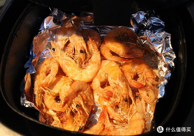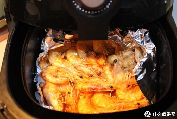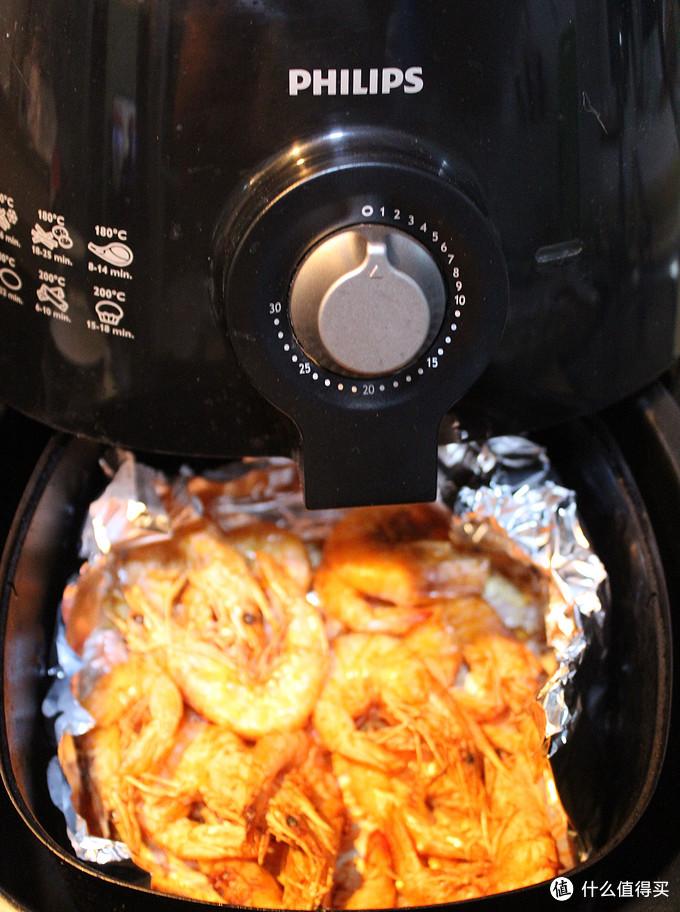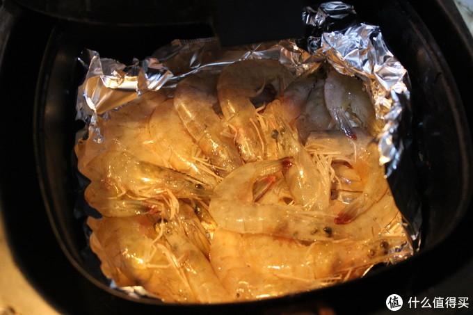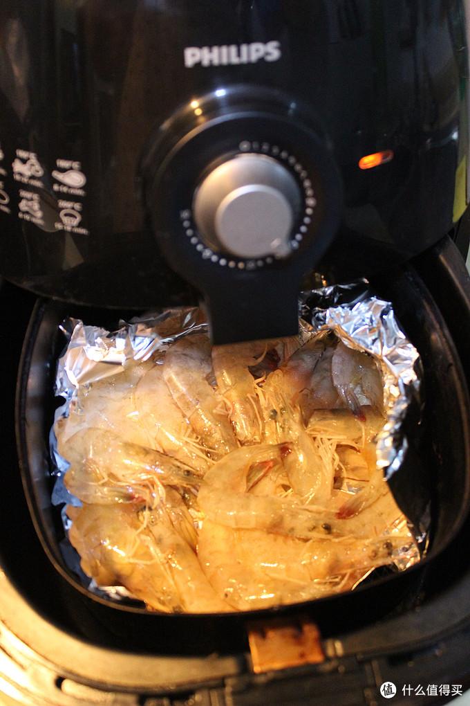空气炸锅预热180°,把处理好的虾放入锅中,定时15分钟