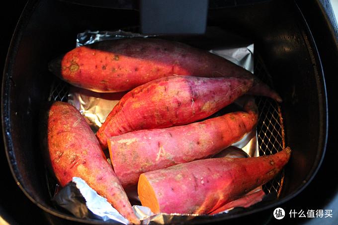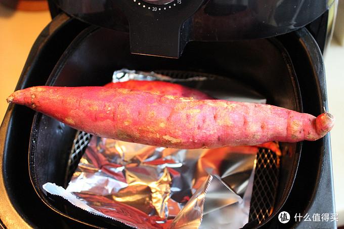 做法:空气炸锅180°预热3分钟,利用预热时间将红薯洗净,用厨房吸油纸擦干表面后放入空气炸锅15——20分钟