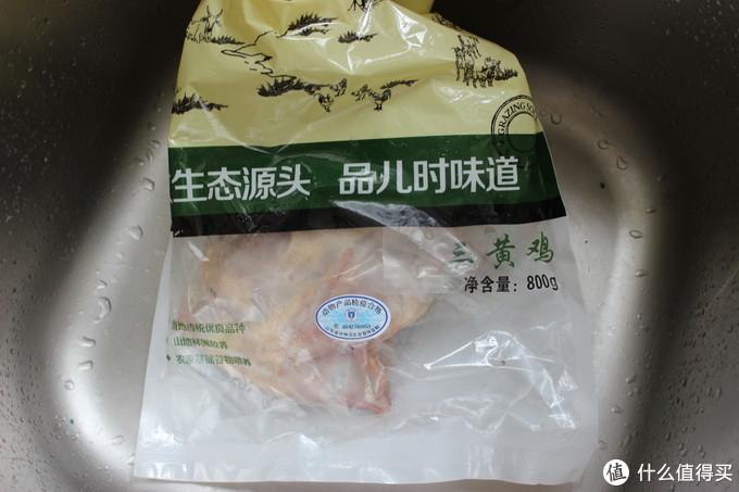 取出腌制好的三黄鸡,并将空气炸锅炸锅预热至180°