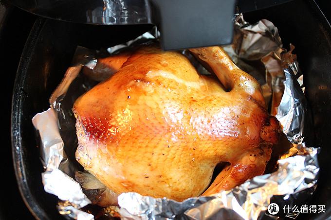 如果鸡表面颜色金黄,那么加盖一层锡纸继续烘烤