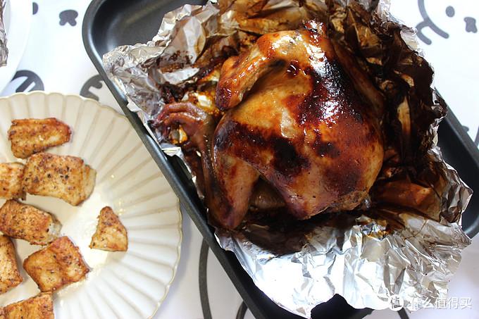 然后这次没有在上面包裹锡纸,所以烤出来是有点干的,但是味道还是很好的,如果喜欢吃湿润有汤汁口感的,一定记得加盖锡纸包裹后再烤哦。