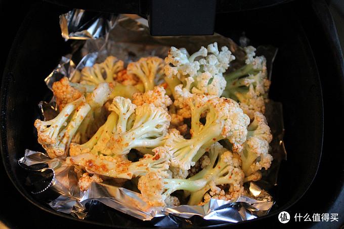 空气炸锅预热180°,将菜花放入炸蓝里,16分钟