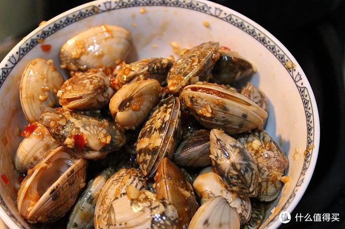 这次是楼主的懒人简易版本,之前也做过配料很多的花甲粉丝,金针菇粉丝什么的,做得多了就被我简化了。如果要加粉丝和金针菇,那么泡开的粉丝和金针菇要放在花蛤下面一层,刷上同样的酱料就可以了。