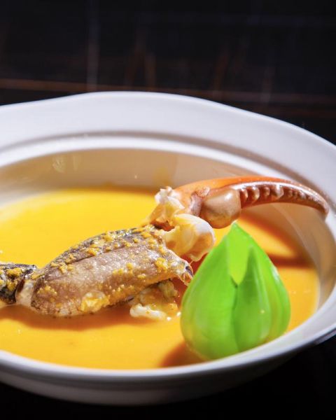 推荐菜品:姬松茸炖辽参汤、花雕蛋白蒸鲜蟹钳