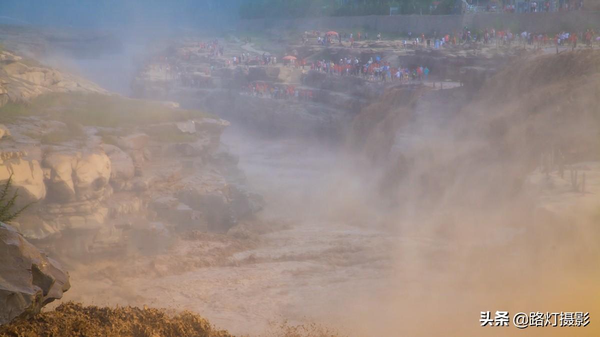 滔滔黄河在此被两岸苍山挟持,束缚在狭窄的石谷中,300米余宽的洪流,骤然收成50米的落差中翻腾倾涌,山鸣谷应,最后从20米余高的断层石崖飞泻直下,可谓“万千气象一壶收”。