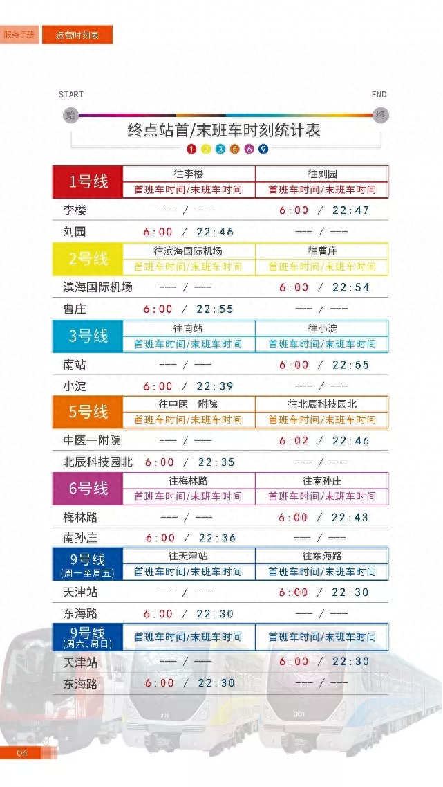 天津地铁最新指南大全!内附各大站点首末运行时刻表,建议收藏